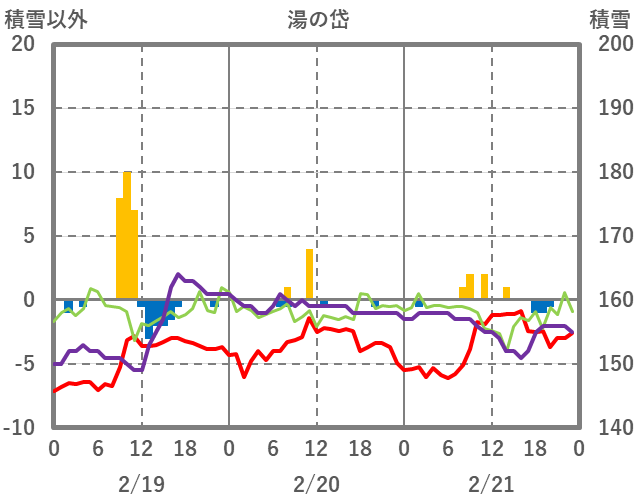 | 日 | 時 | 気温 | 降水 | 風向/風速 | 日照 | 積雪 | 降雪 |