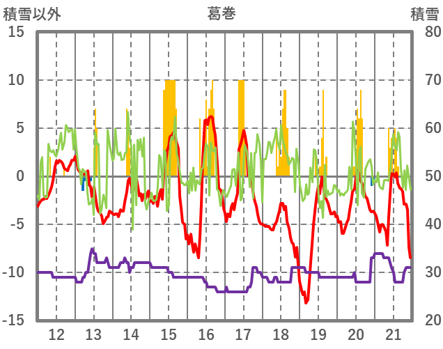 | 日 | 時 | 気温 | 降水 | 風向/風速 | 日照 | 積雪 | 降雪 |
