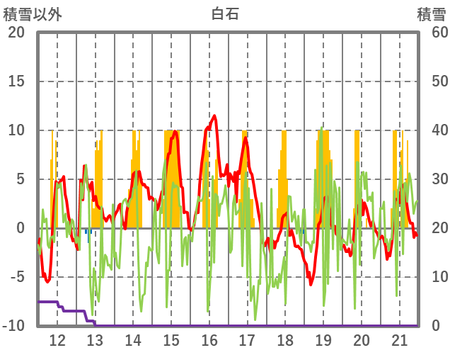 | 日 | 時 | 気温 | 降水 | 風向/風速 | 日照 | 積雪 | 降雪 |
