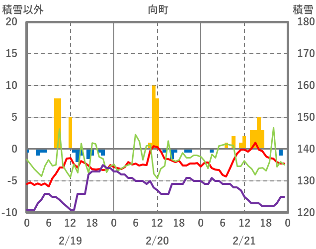 | 日 | 時 | 気温 | 降水 | 風向/風速 | 日照 | 積雪 | 降雪 |