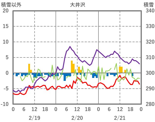 | 日 | 時 | 気温 | 降水 | 風向/風速 | 日照 | 積雪 | 降雪 |