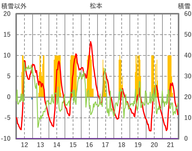 | 日 | 時 | 気温 | 降水 | 風向/風速 | 日照 | 積雪 | 降雪 |