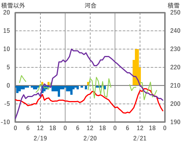 | 日 | 時 | 気温 | 降水 | 風向/風速 | 日照 | 積雪 | 降雪 |