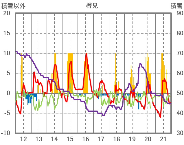 | 日 | 時 | 気温 | 降水 | 風向/風速 | 日照 | 積雪 | 降雪 |
