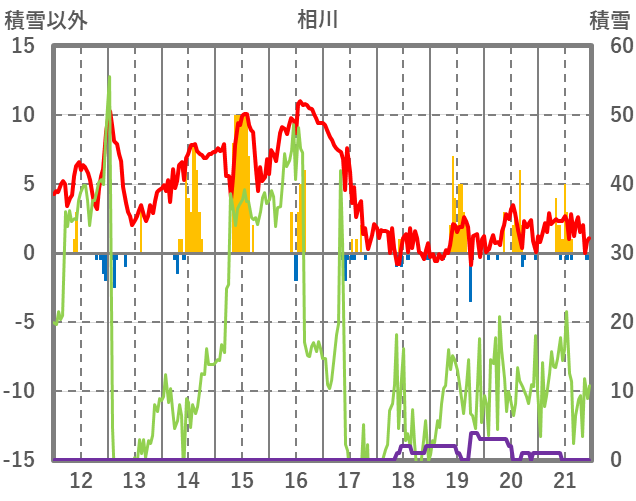 | 日 | 時 | 気温 | 降水 | 風向/風速 | 日照 | 積雪 | 降雪 |