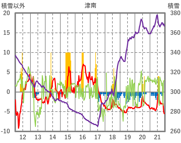 | 日 | 時 | 気温 | 降水 | 風向/風速 | 日照 | 積雪 | 降雪 |