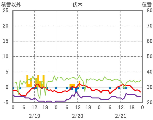 | 日 | 時 | 気温 | 降水 | 風向/風速 | 日照 | 積雪 | 降雪 |