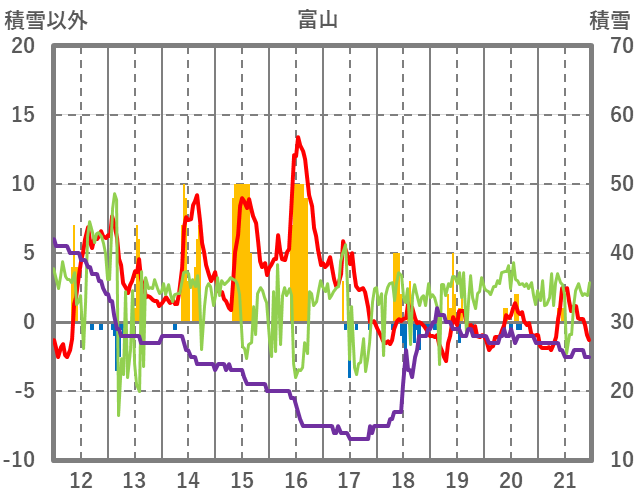 | 日 | 時 | 気温 | 降水 | 風向/風速 | 日照 | 積雪 | 降雪 |