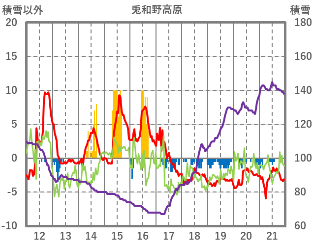 | 日 | 時 | 気温 | 降水 | 風向/風速 | 日照 | 積雪 | 降雪 |