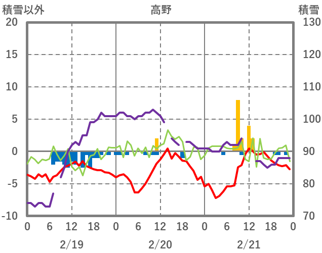 | 日 | 時 | 気温 | 降水 | 風向/風速 | 日照 | 積雪 | 降雪 |