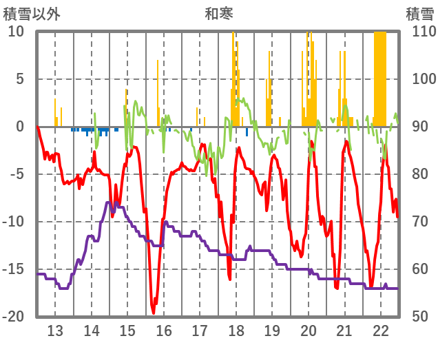 | 日 | 時 | 気温 | 降水 | 風向/風速 | 日照 | 積雪 | 降雪 |