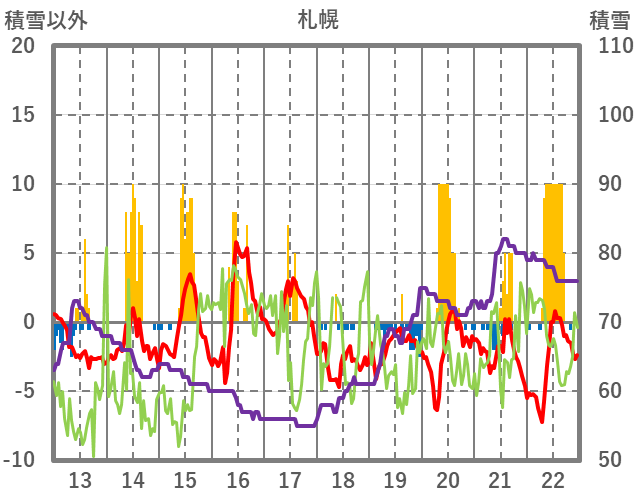 | 日 | 時 | 気温 | 降水 | 風向/風速 | 日照 | 積雪 | 降雪 |