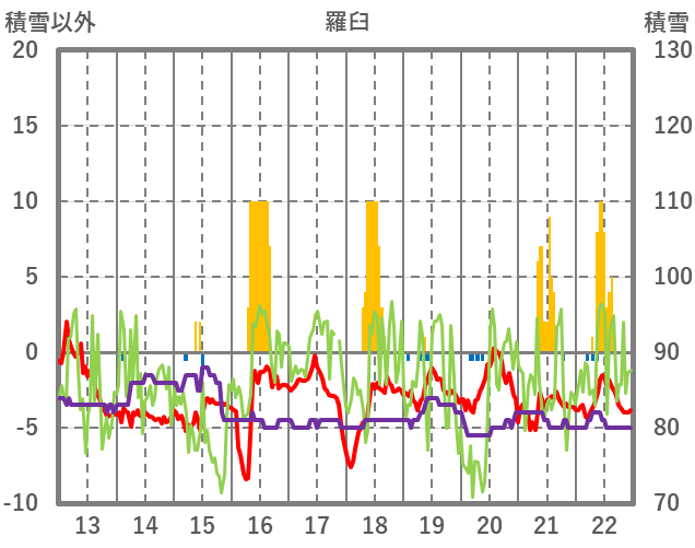 | 日 | 時 | 気温 | 降水 | 風向/風速 | 日照 | 積雪 | 降雪 |