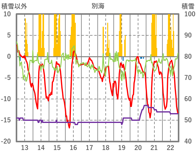 | 日 | 時 | 気温 | 降水 | 風向/風速 | 日照 | 積雪 | 降雪 |