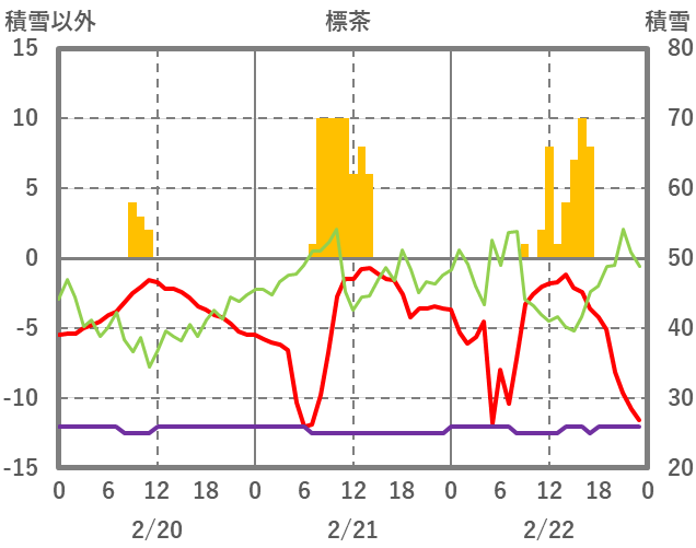 | 日 | 時 | 気温 | 降水 | 風向/風速 | 日照 | 積雪 | 降雪 |