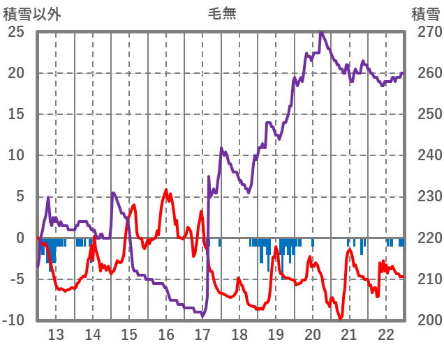 | 日 | 時 | 気温 | 降水 | 風向/風速 | 日照 | 積雪 | 降雪 |