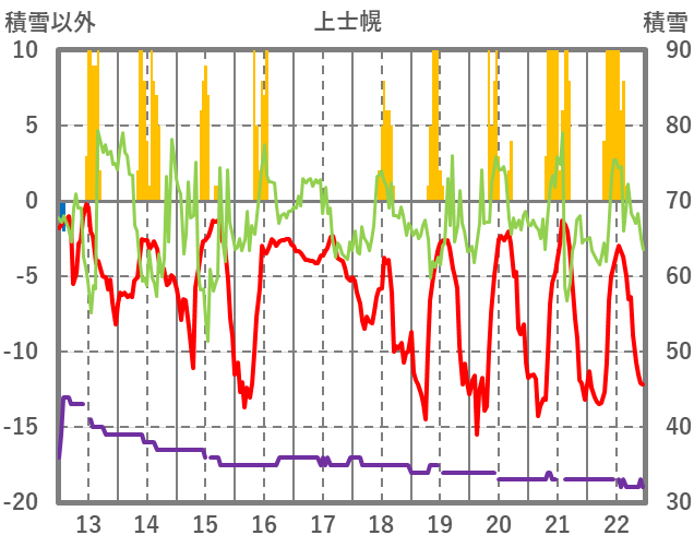 | 日 | 時 | 気温 | 降水 | 風向/風速 | 日照 | 積雪 | 降雪 |