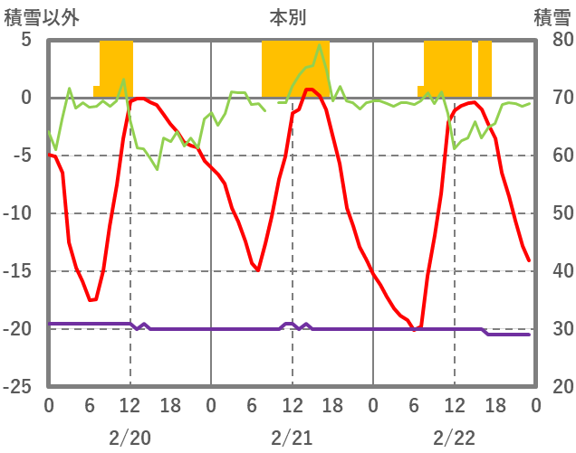 | 日 | 時 | 気温 | 降水 | 風向/風速 | 日照 | 積雪 | 降雪 |