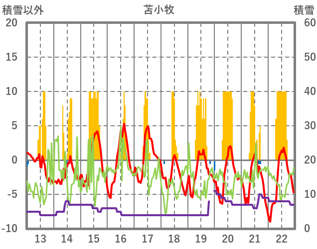 | 日 | 時 | 気温 | 降水 | 風向/風速 | 日照 | 積雪 | 降雪 |