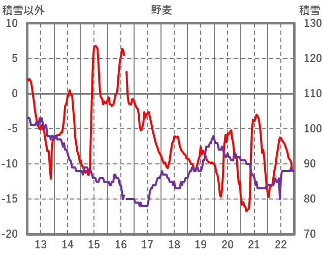 | 日 | 時 | 気温 | 降水 | 風向/風速 | 日照 | 積雪 | 降雪 |