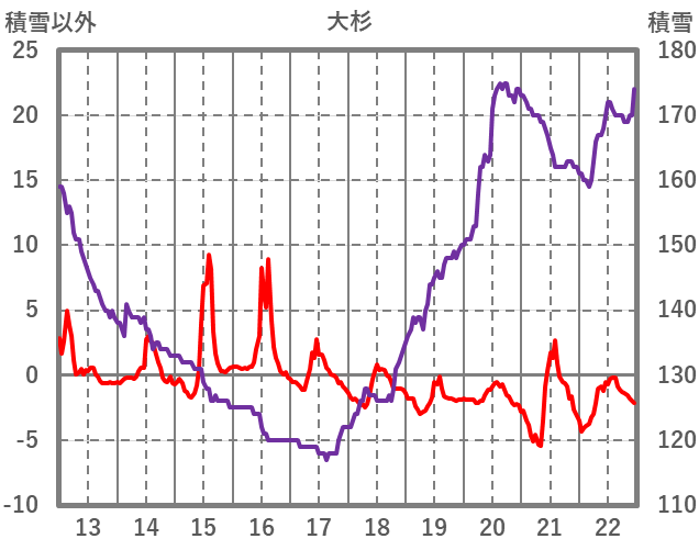| 日 | 時 | 気温 | 降水 | 風向/風速 | 日照 | 積雪 | 降雪 |