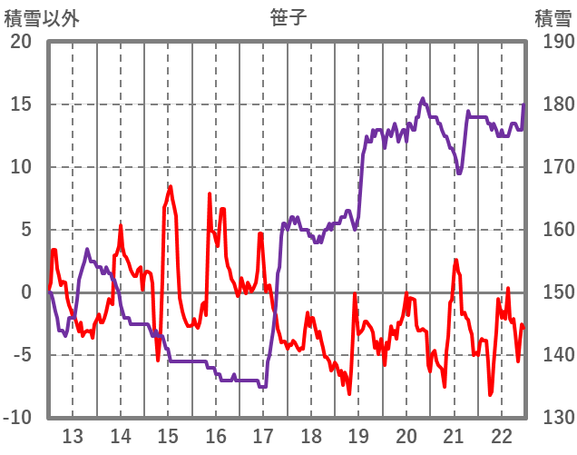 | 日 | 時 | 気温 | 降水 | 風向/風速 | 日照 | 積雪 | 降雪 |