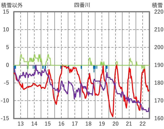 | 日 | 時 | 気温 | 降水 | 風向/風速 | 日照 | 積雪 | 降雪 |