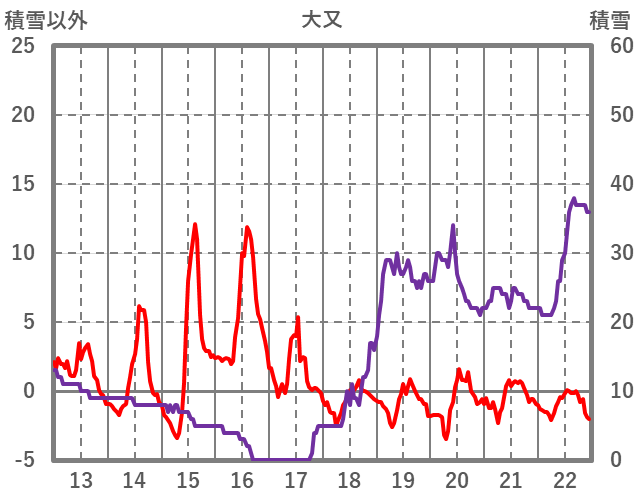 | 日 | 時 | 気温 | 降水 | 風向/風速 | 日照 | 積雪 | 降雪 |
