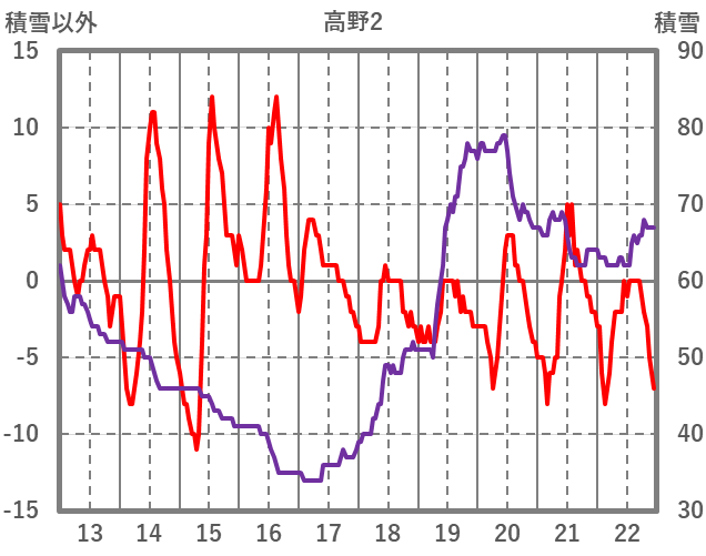 | 日 | 時 | 気温 | 降水 | 風向/風速 | 日照 | 積雪 | 降雪 |