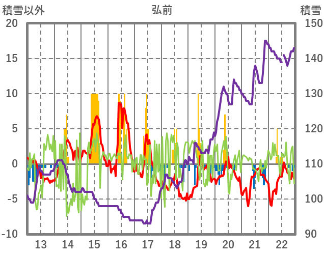 | 日 | 時 | 気温 | 降水 | 風向/風速 | 日照 | 積雪 | 降雪 |