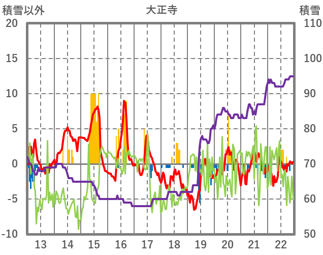 | 日 | 時 | 気温 | 降水 | 風向/風速 | 日照 | 積雪 | 降雪 |