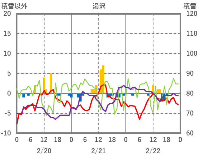 | 日 | 時 | 気温 | 降水 | 風向/風速 | 日照 | 積雪 | 降雪 |