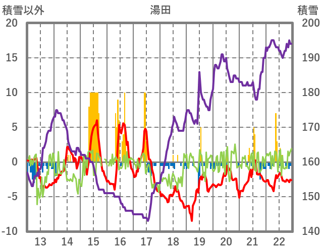 | 日 | 時 | 気温 | 降水 | 風向/風速 | 日照 | 積雪 | 降雪 |