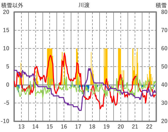 | 日 | 時 | 気温 | 降水 | 風向/風速 | 日照 | 積雪 | 降雪 |