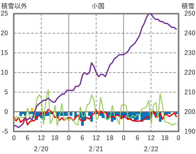 | 日 | 時 | 気温 | 降水 | 風向/風速 | 日照 | 積雪 | 降雪 |