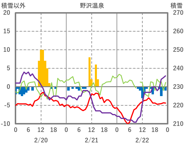 | 日 | 時 | 気温 | 降水 | 風向/風速 | 日照 | 積雪 | 降雪 |