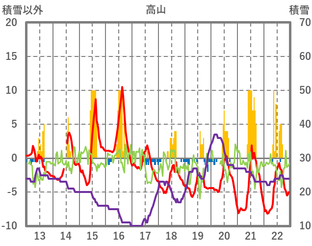 | 日 | 時 | 気温 | 降水 | 風向/風速 | 日照 | 積雪 | 降雪 |