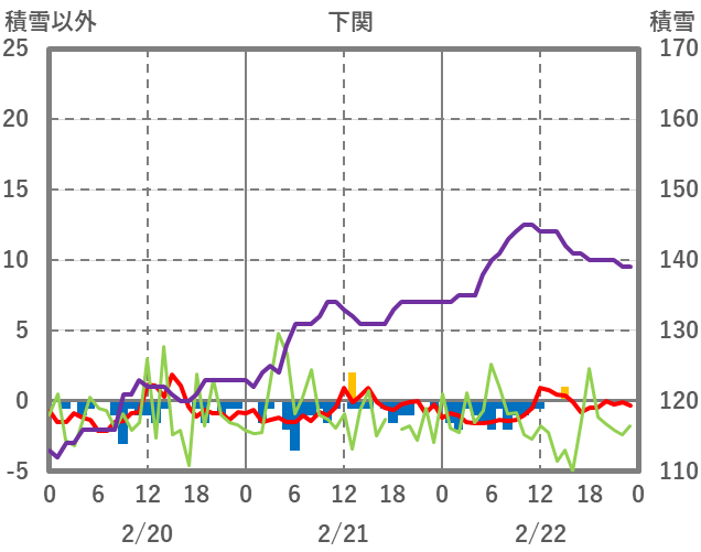 | 日 | 時 | 気温 | 降水 | 風向/風速 | 日照 | 積雪 | 降雪 |