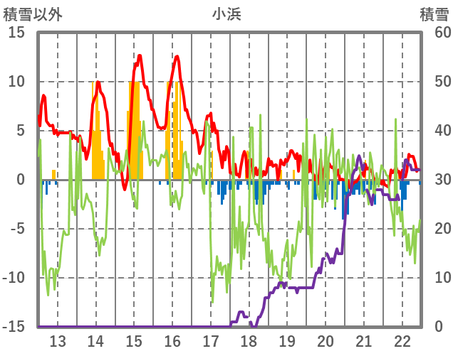 | 日 | 時 | 気温 | 降水 | 風向/風速 | 日照 | 積雪 | 降雪 |