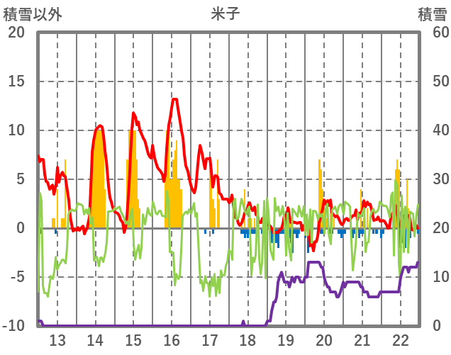 | 日 | 時 | 気温 | 降水 | 風向/風速 | 日照 | 積雪 | 降雪 |
