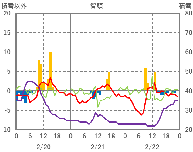 | 日 | 時 | 気温 | 降水 | 風向/風速 | 日照 | 積雪 | 降雪 |