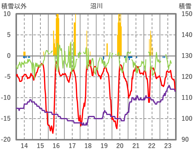 | 日 | 時 | 気温 | 降水 | 風向/風速 | 日照 | 積雪 | 降雪 |