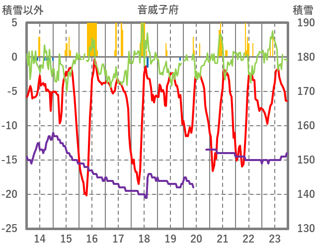 | 日 | 時 | 気温 | 降水 | 風向/風速 | 日照 | 積雪 | 降雪 |