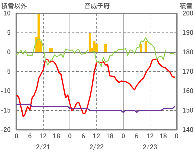 | 日 | 時 | 気温 | 降水 | 風向/風速 | 日照 | 積雪 | 降雪 |