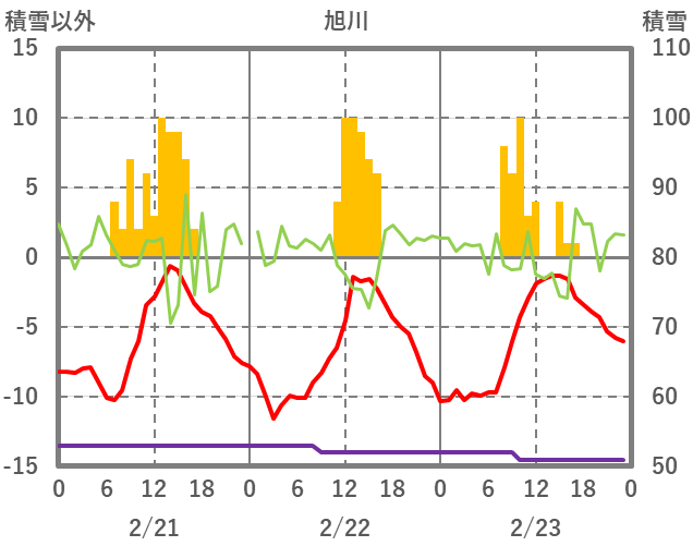 | 日 | 時 | 気温 | 降水 | 風向/風速 | 日照 | 積雪 | 降雪 |