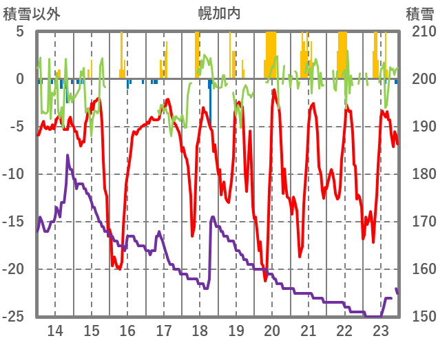 | 日 | 時 | 気温 | 降水 | 風向/風速 | 日照 | 積雪 | 降雪 |