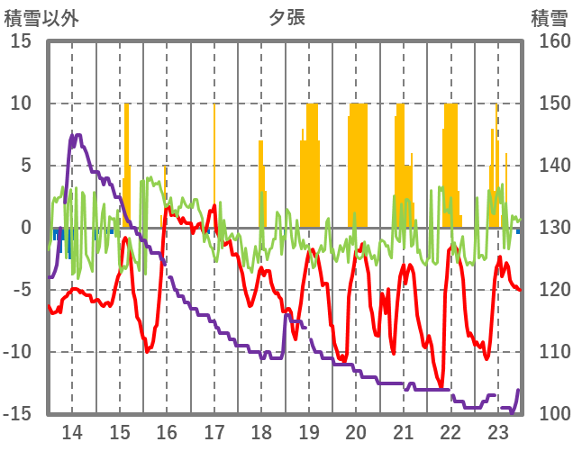 | 日 | 時 | 気温 | 降水 | 風向/風速 | 日照 | 積雪 | 降雪 |