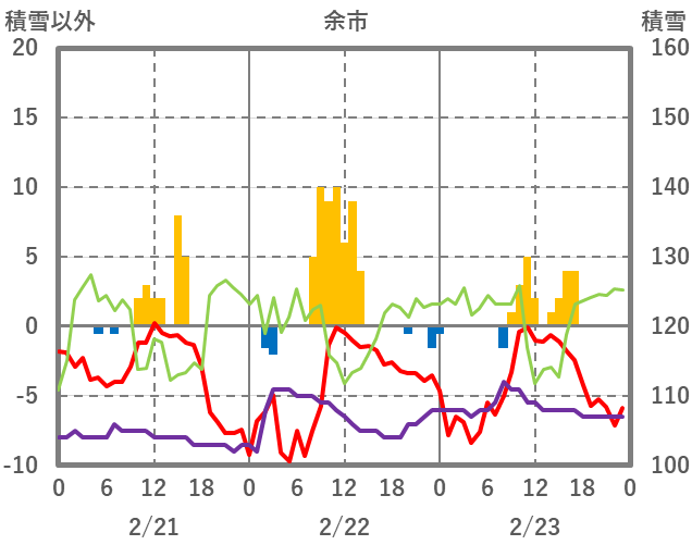 | 日 | 時 | 気温 | 降水 | 風向/風速 | 日照 | 積雪 | 降雪 |