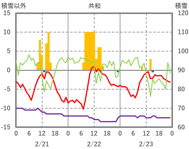 | 日 | 時 | 気温 | 降水 | 風向/風速 | 日照 | 積雪 | 降雪 |
