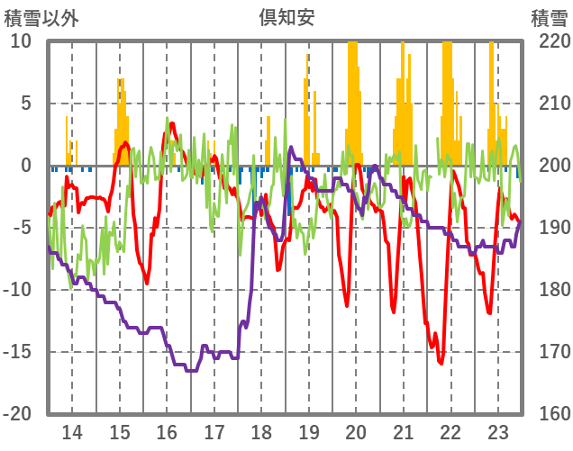| 日 | 時 | 気温 | 降水 | 風向/風速 | 日照 | 積雪 | 降雪 |